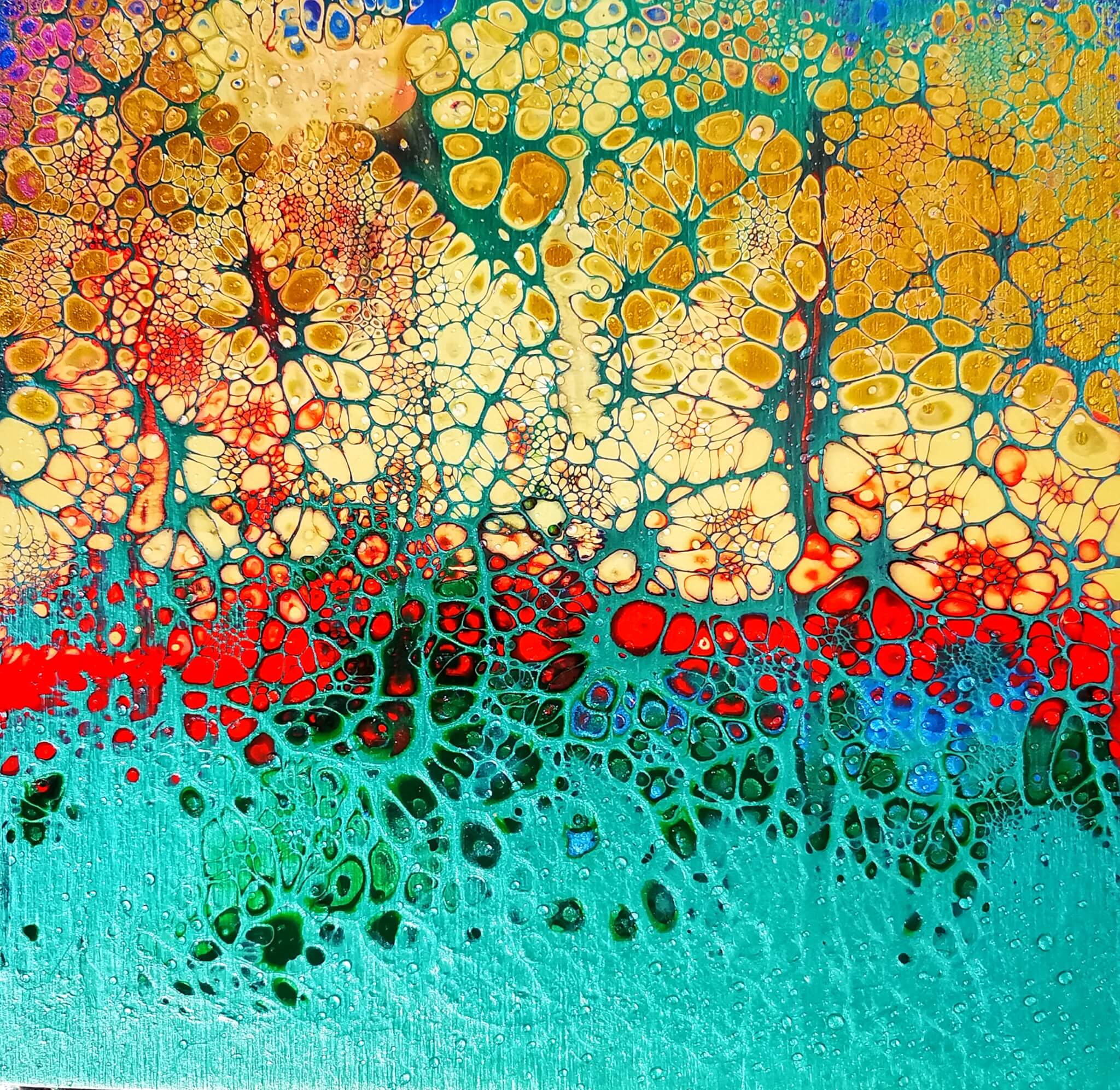 A workshopon lépésről lépésre megtanítalak a Fluid Art alapjaira — arra a játékos, szabad festészeti technikára, ahol a festék nem ecsettel, hanem áramló mozdulatokkal születik képpé.